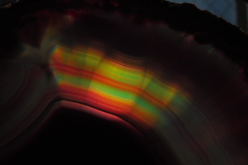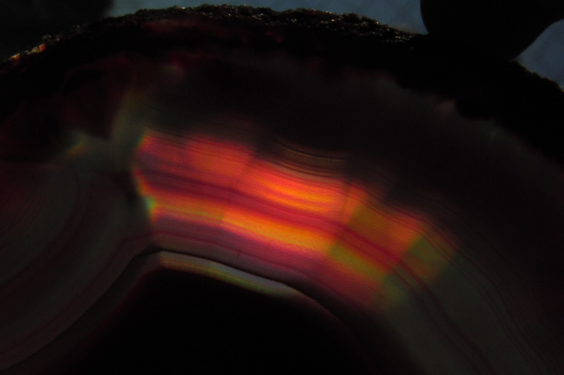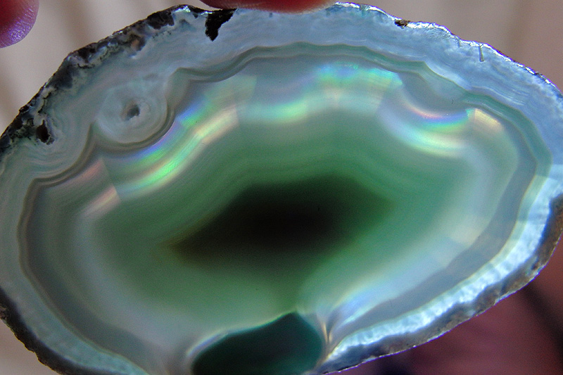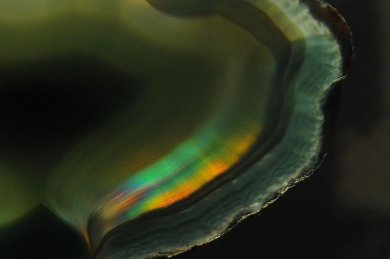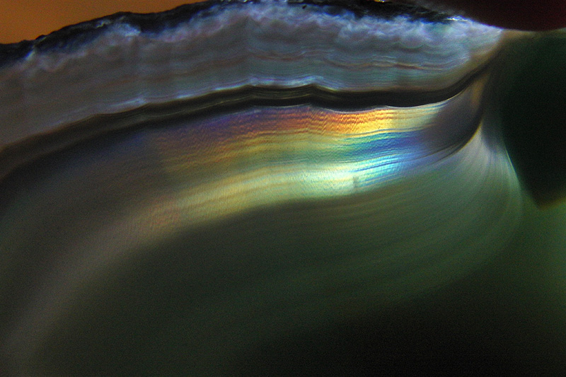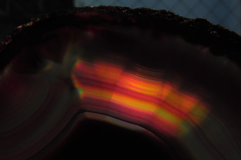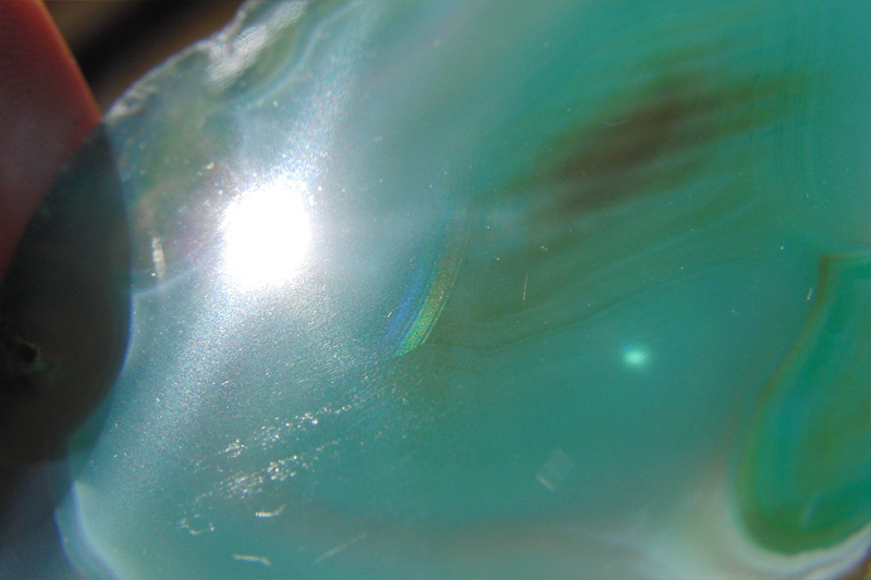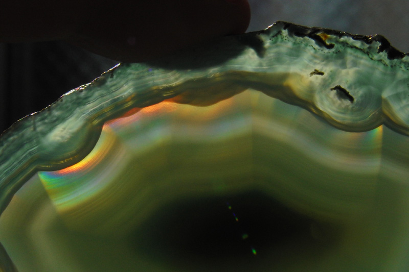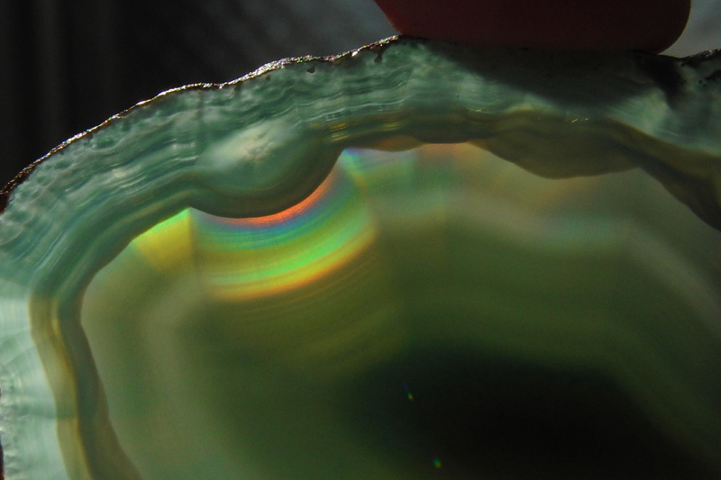 ややミルキーな地色の部分の一部に虹を確認することが出来ます。