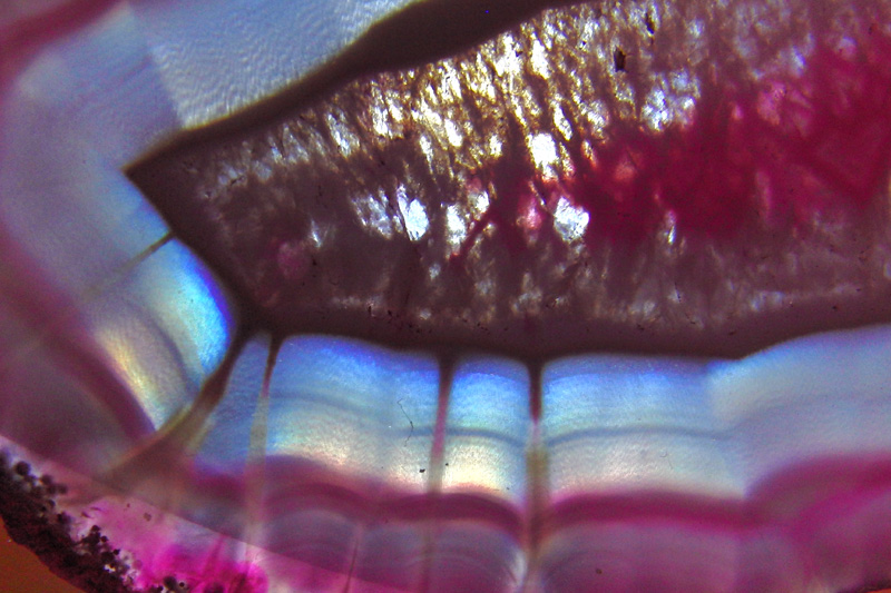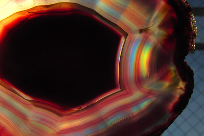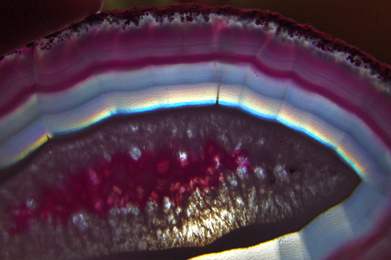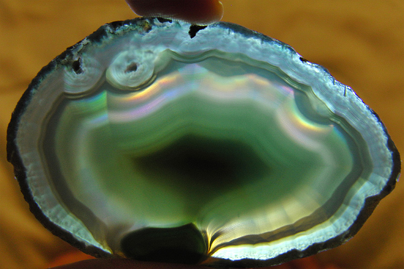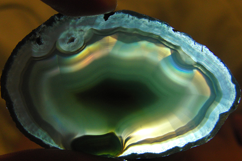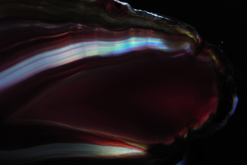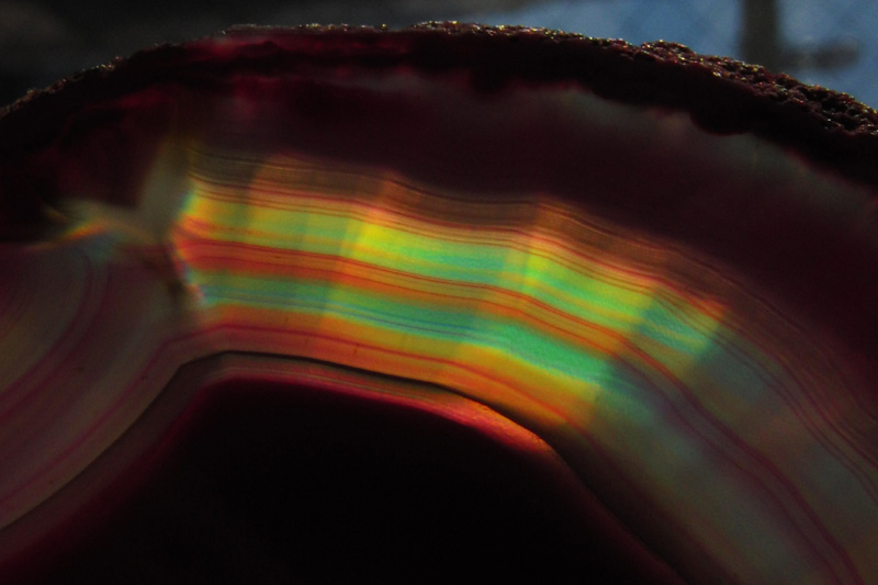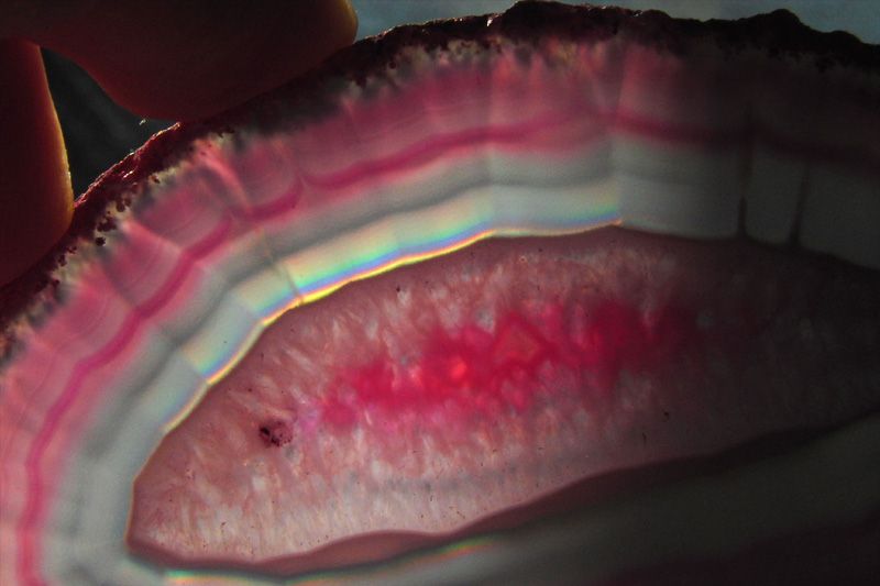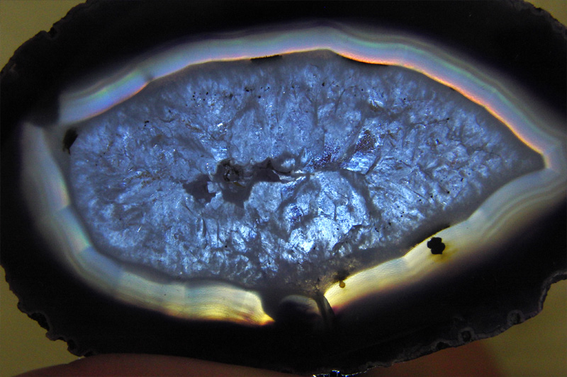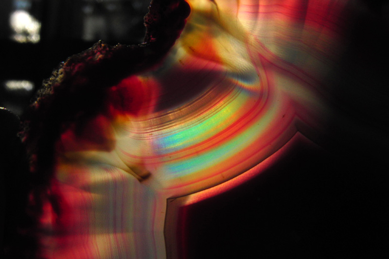 ややミルキーな地色の部分の一部に虹を確認することが出来ます。