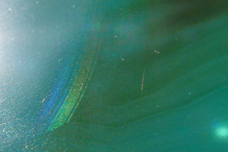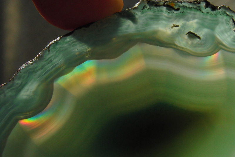 全部緑なので普通に見ただけではどこに虹が出るのか判りづらいのですが光にかざすと全周に虹を確認することができます。